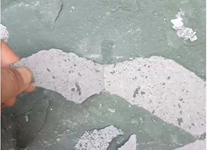 原因:由于基層存在起砂、不堅實、疏松或大量的浮灰等雜質,導致防水層與基層的結合不穩定。閉水試驗時,水壓導致涂膜再次收縮。