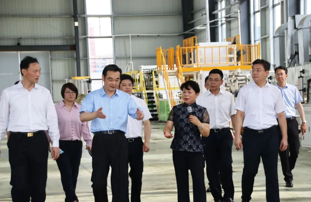 7月6日下午,淮安市市長史志軍、副市長王向紅一行在洪澤區區委書記張沖林、區長張灝、常務副區長宋月霞、經濟開發區黨工委書記朱峰、副區長陸氓、經濟開發區管委會主任劉興春等領導的陪同下到我司考察指導,總經理楊桂玲接待并陪同考察。