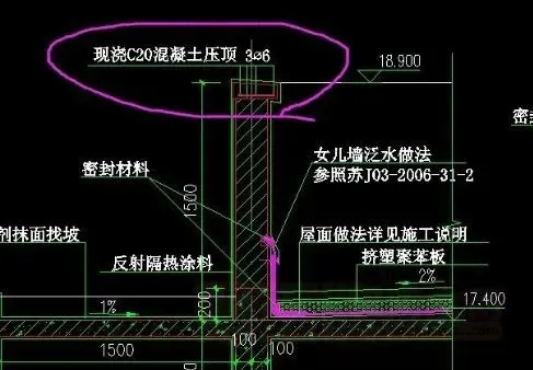 壓頂處于屋面的最高處,直接暴露于自然狀況中,受天氣影響大,受整個縱向墻體溫差、構造受力變形及墻體混凝土和沙漿干縮變形的影響也很大,因而即便是配筋混凝土壓頂,其橫向破綻也是不可避免的。多在3~5年內破綻均會鮮明地展開,配筋混凝土壓頂,在5~8m以內就會有1條破綻展開,不配筋混凝土在1m支配就有1條破綻。雨水順破綻到墻內,繞過防水層漏到室內,以是壓頂必需作柔性涂料加強層。普通是作在壓頂下,假定選材不當,或許會組成壓頂和女兒墻分層,目前只需聚合物水泥基涂料和聚合物水泥沙漿概略用于此處防水;另一種是將防水層作在壓頂下面,采取卷材粘貼或用涂料涂刷。