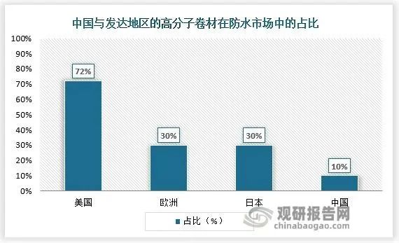 1、中國高分子防水卷材市占率低,市場潛力大