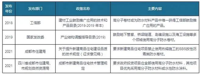 我國高分子防水卷材行業(yè)重點政策梳理